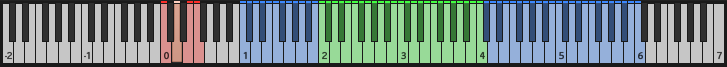 Since the individual range of each instrument is modeled after the natural playing range of the captured articulations, the playable range on the keyboard can change between presets. The playable range is highlighted in blue on both KONTAKT’s on-screen keyboard and the KOMPLETE KONTROL hardware. Animated Orchestra Presets are optimized to sound best in the two octaves around middle C, which are marked green on the on-screen keyboard.