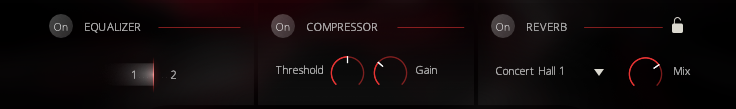 - Equalizer: Choose between two master EQ settings that were prepared specifically for this instrument.
