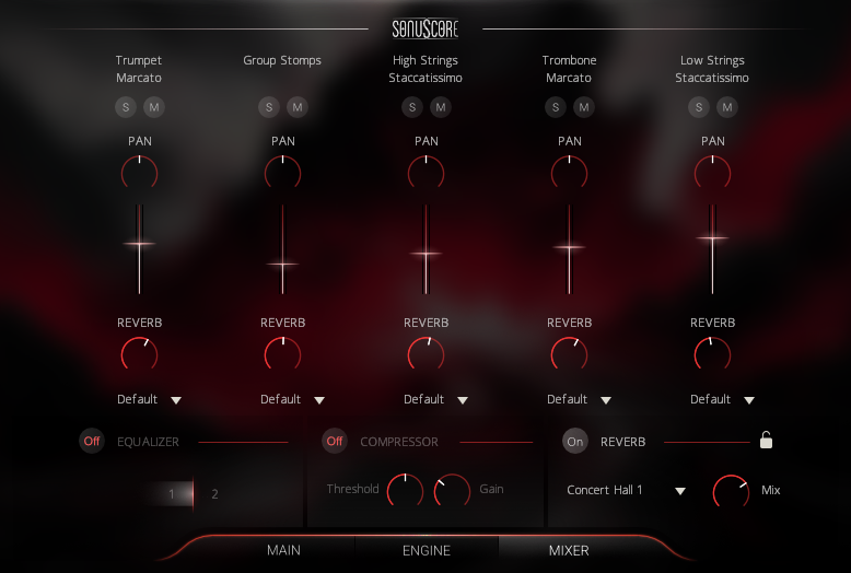 - Reverb: Sets the send-level to the included convolution reverb. With this control, the amount of reverb on each instrument can be adjusted. If set to -infdB, the master reverb will not affect this slot at all. This way depth and distances in Forces of Fury can be adjusted.