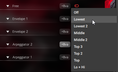 Use the +8va buttons to add an additional voice one octave above the currently played notes in the corresponding slot.