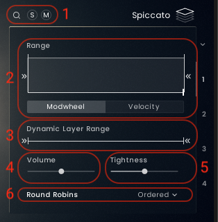 Expression is mapped to CC11 and controls the volume. - Shows the currently loaded single articulation.