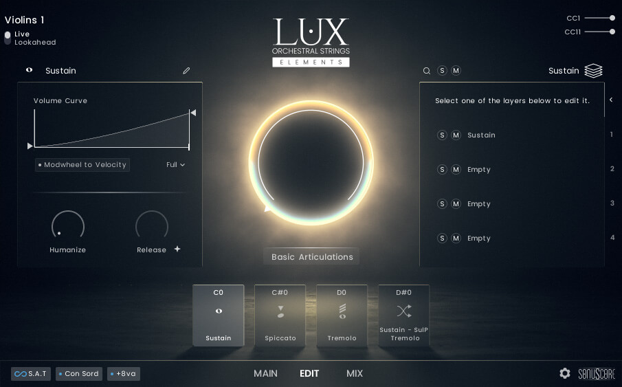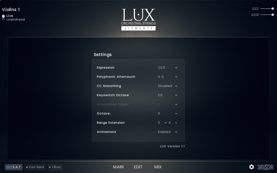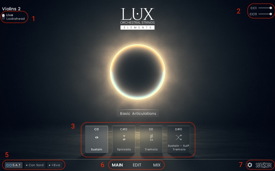 - LUX Orchestral Strings Elements has two playing modes: Live Mode and Lookahead.