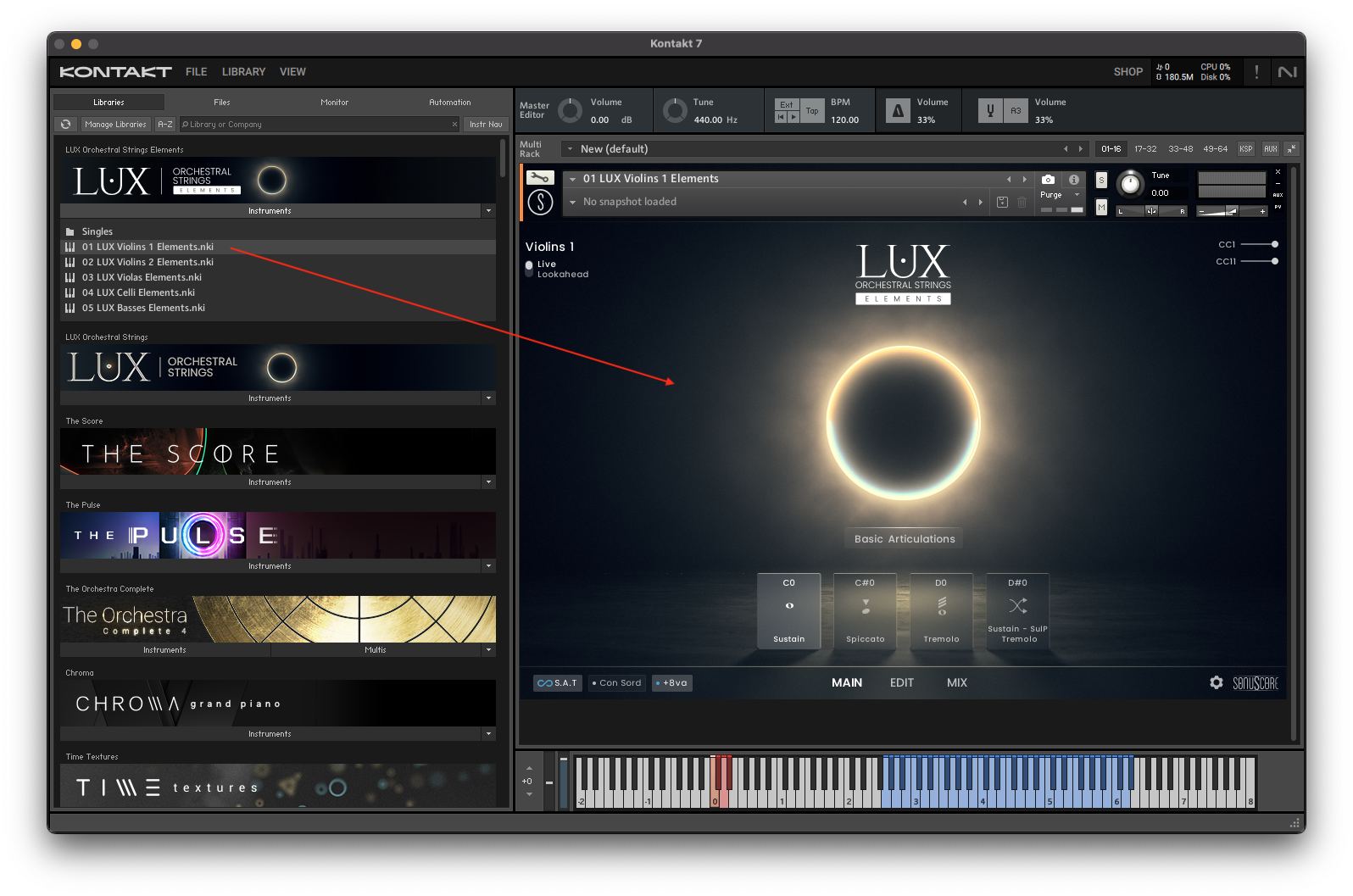 Loading LUX Orchestral Strings Elements via KONTAKT