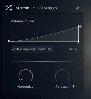 Move between long articulations while holding a note. A key switch note with a lower velocity creates a gradual shift (4 seconds), a higher velocity will produce a quicker change (1.2 seconds). The feature is activated per default.
