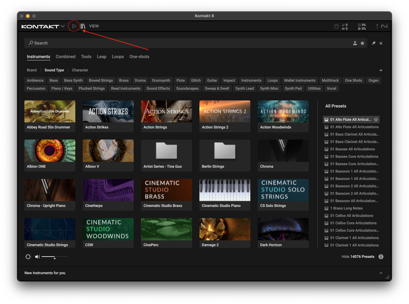 - 2. Open KONTAKT PLAYER as a plug-in in your host software (DAW), or as a stand-alone application.
