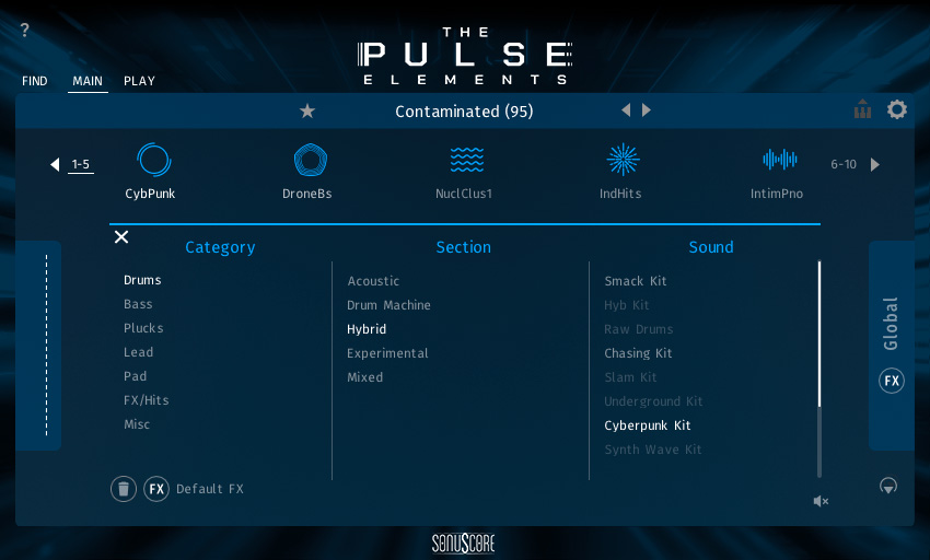 THE PULSE ELEMENTS is not an independent plug-in, so you will first need to open an instance of Native Instrument's free KONTAKT PLAYER before you can start playing.