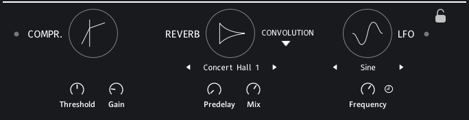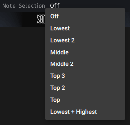 Note Selection: Selects whether or not all played notes should be heard in this particular module. The different options allow to only play specific notes of a played chord. This can be used to prevent a muddy bass section and orchestrate chords carefully with multiple instruments.