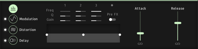 At the bottom of the envelope module you can find the general controls for several functions.